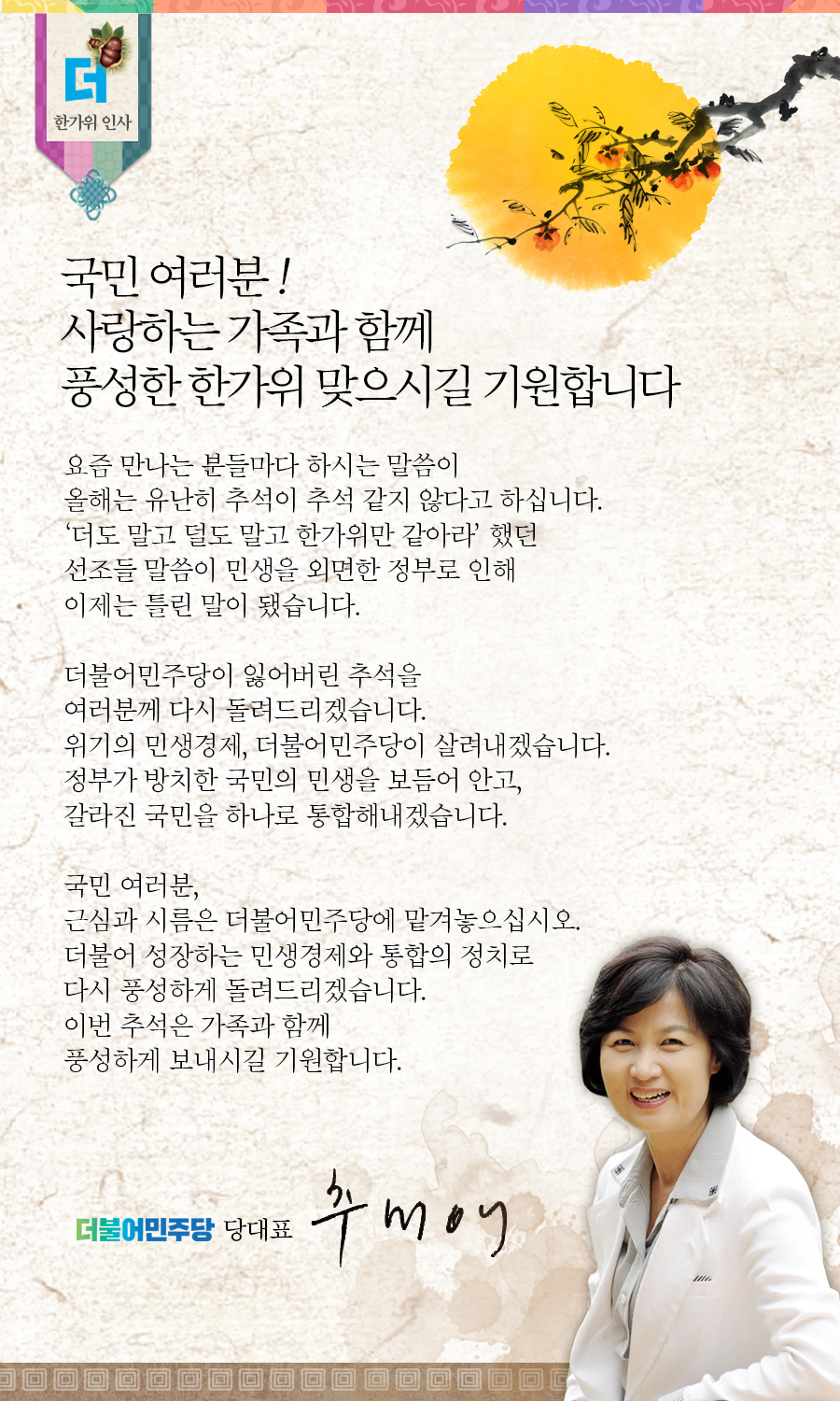 국민 여러분, 풍성한 한가위 보내시길 바랍니다.