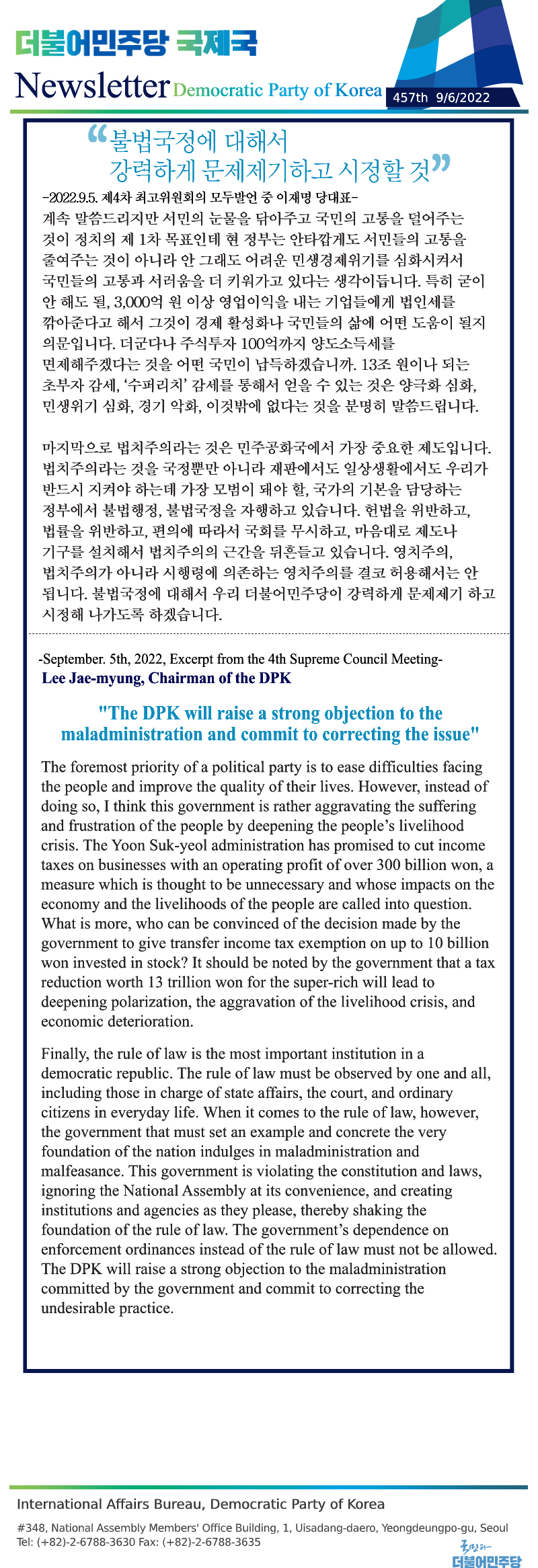 [457th Newsletter]Excerpt from the 4th Supreme Council Meeting
