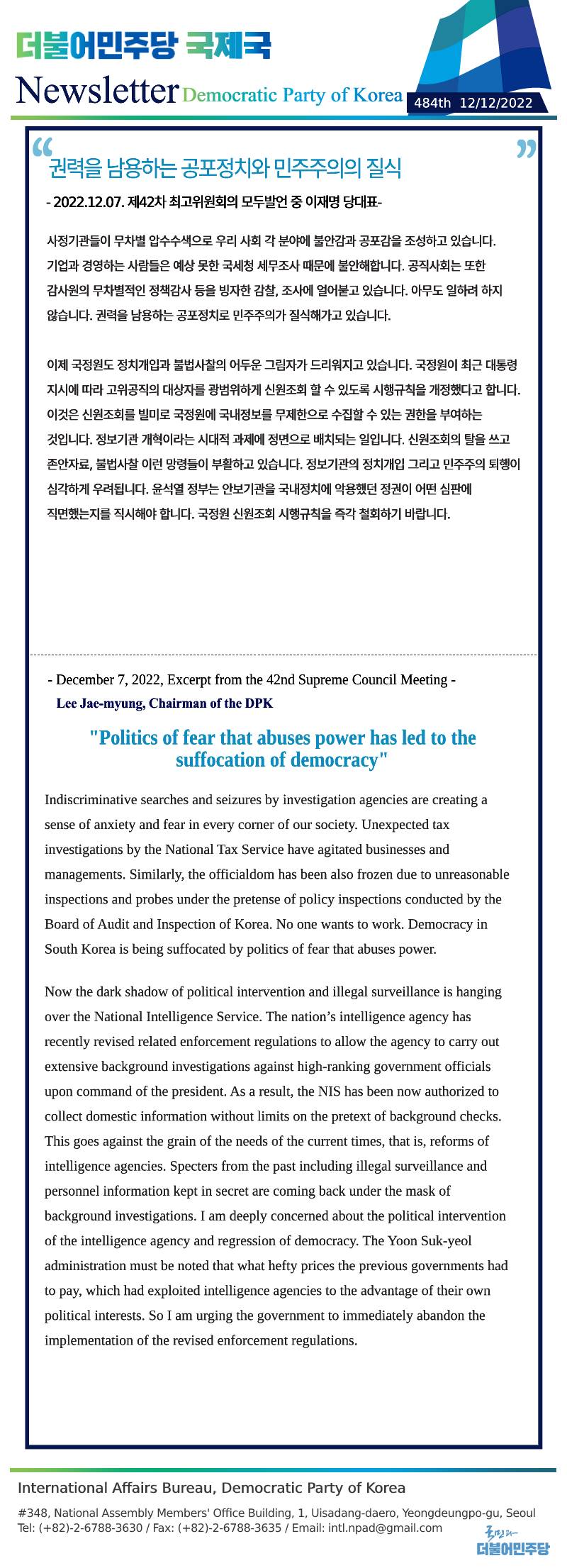 [484th Newsletter]Excerpt from the 42nd Supreme Council Meeting