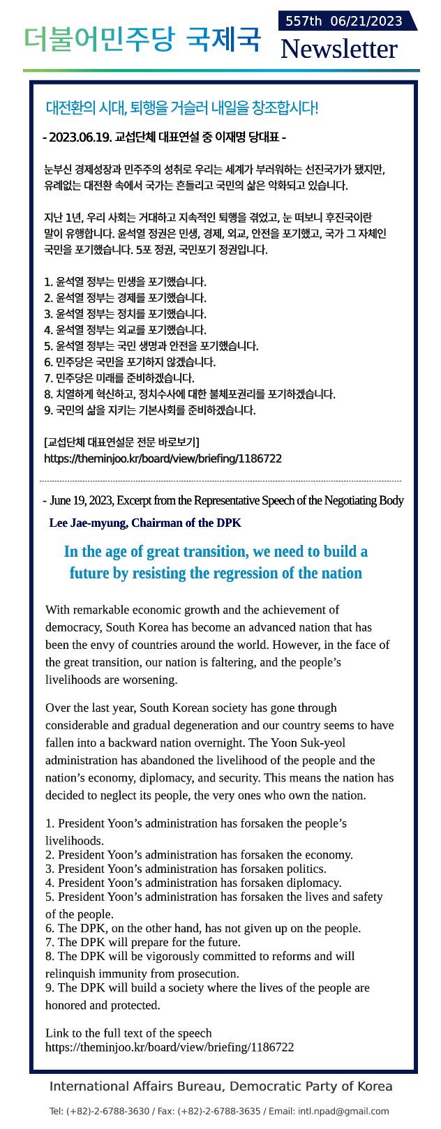[557th Newsletter]Excerpt from the Representative Speech of the Negotiating Body
