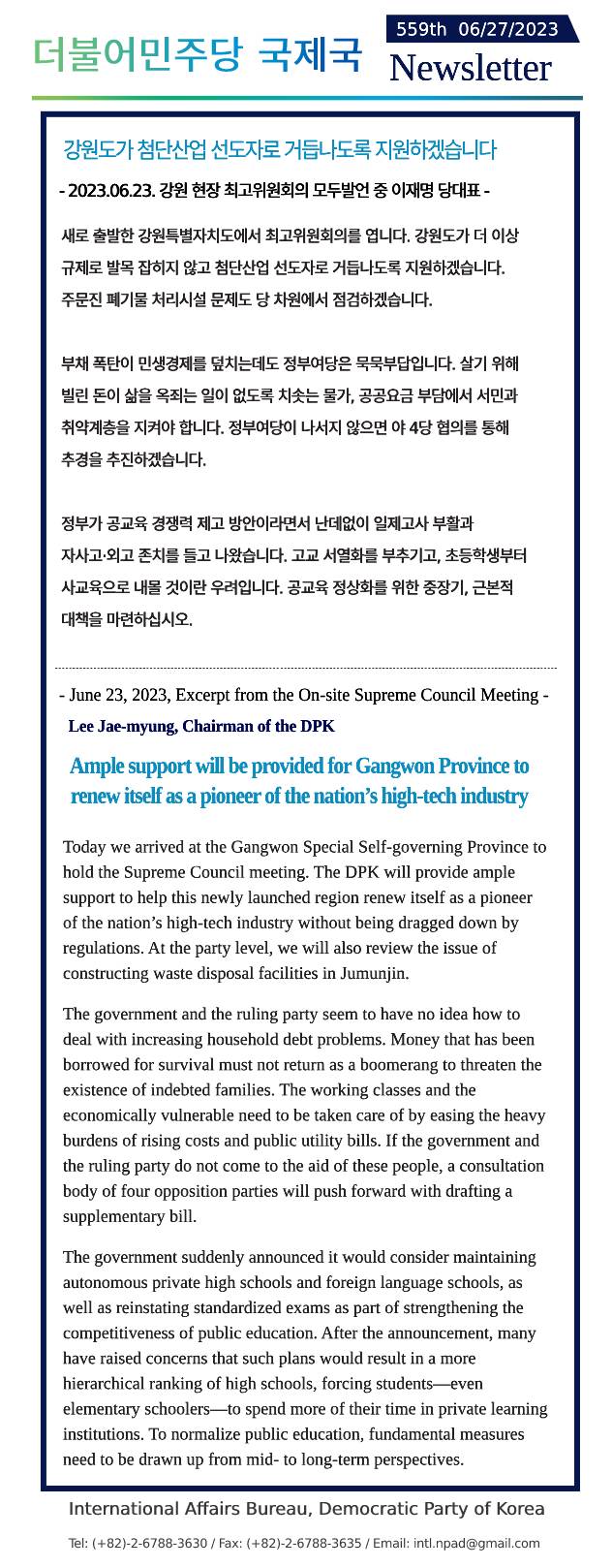 [559th Newsletter]Excerpt from the On-site Supreme Council Meeting