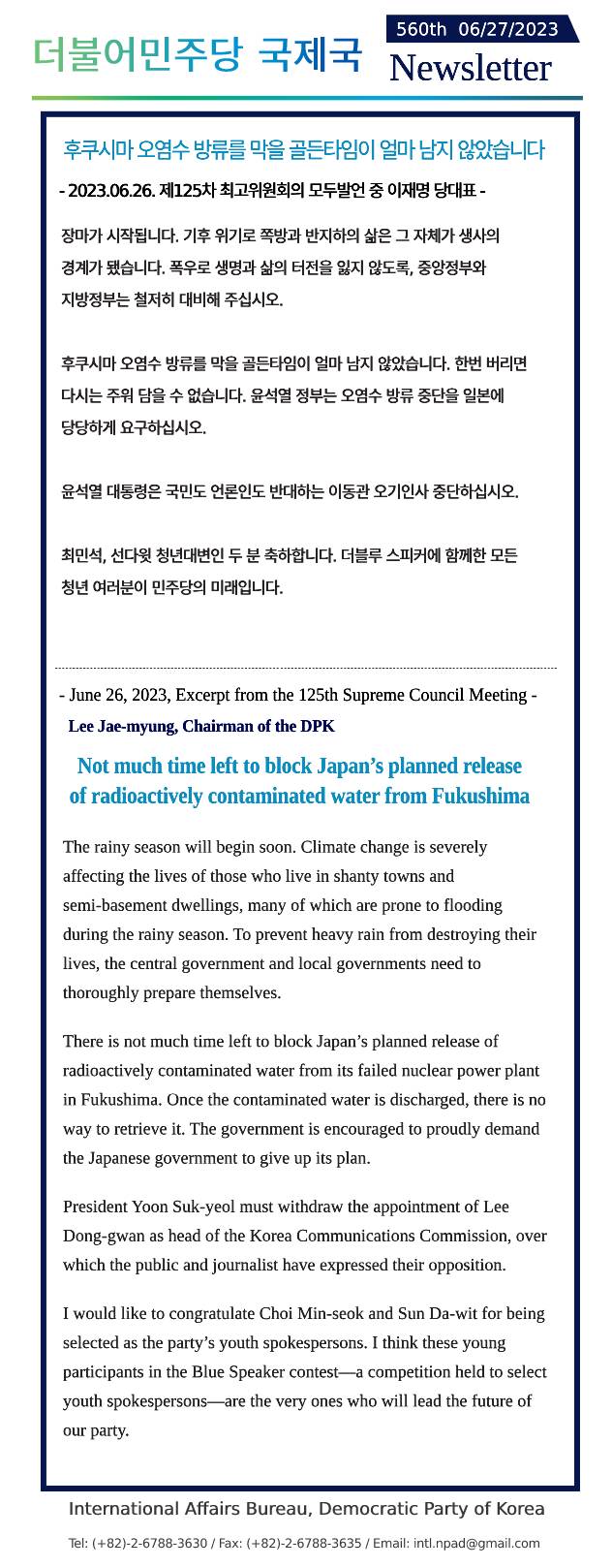[559th Newsletter]Excerpt from the On-site Supreme Council Meeting