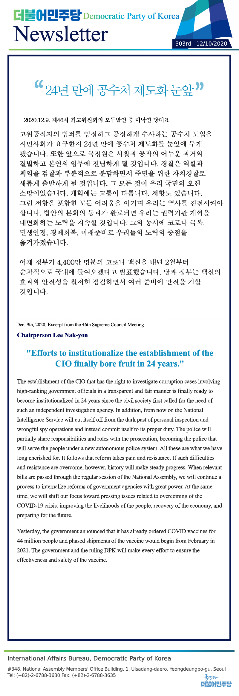 [303rd Newsletter] Excerpt from the 46th Supreme Council Meeting