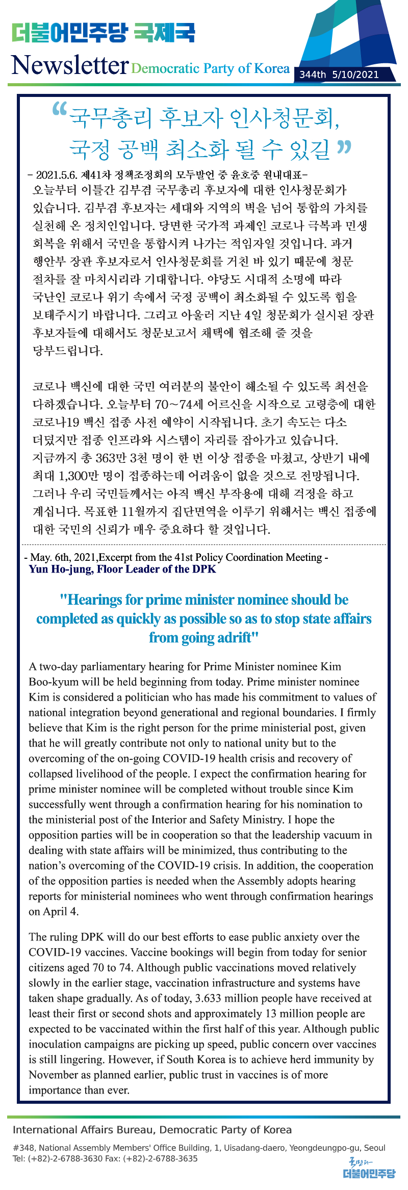 [344th Newsletter]Excerpt from the 41st Policy Coordination Meeting