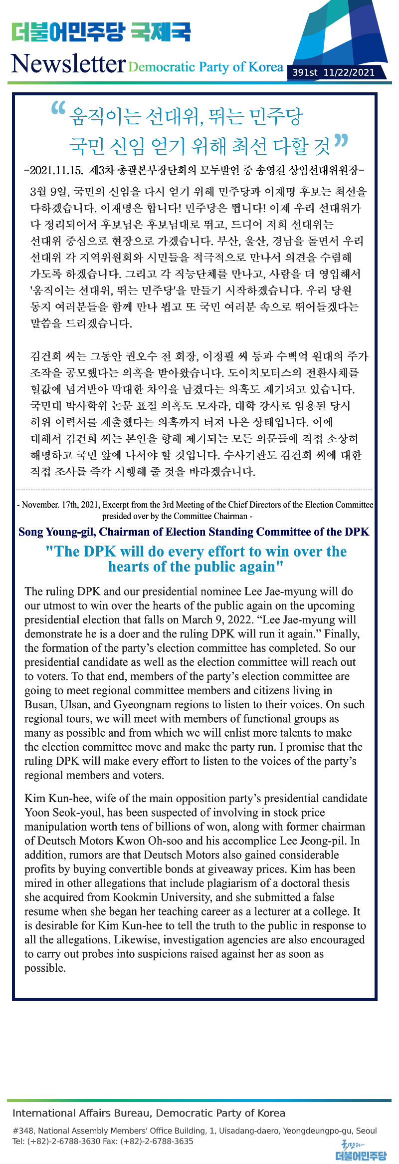 [390th Newsletter]Excerpt from the 4th Central Election Committee Meeting
