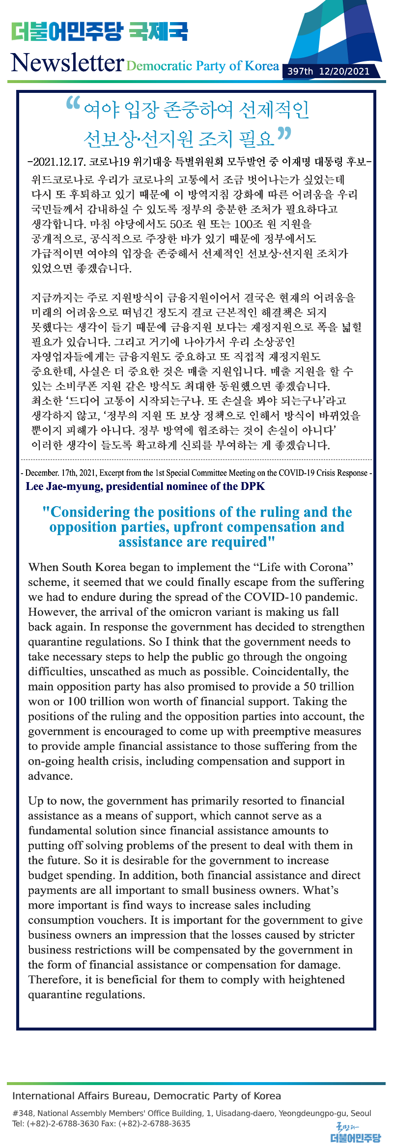 [397th Newsletter]Excerpt from the 1st Special Committee Meeting on the COVID-19 Crisis Response