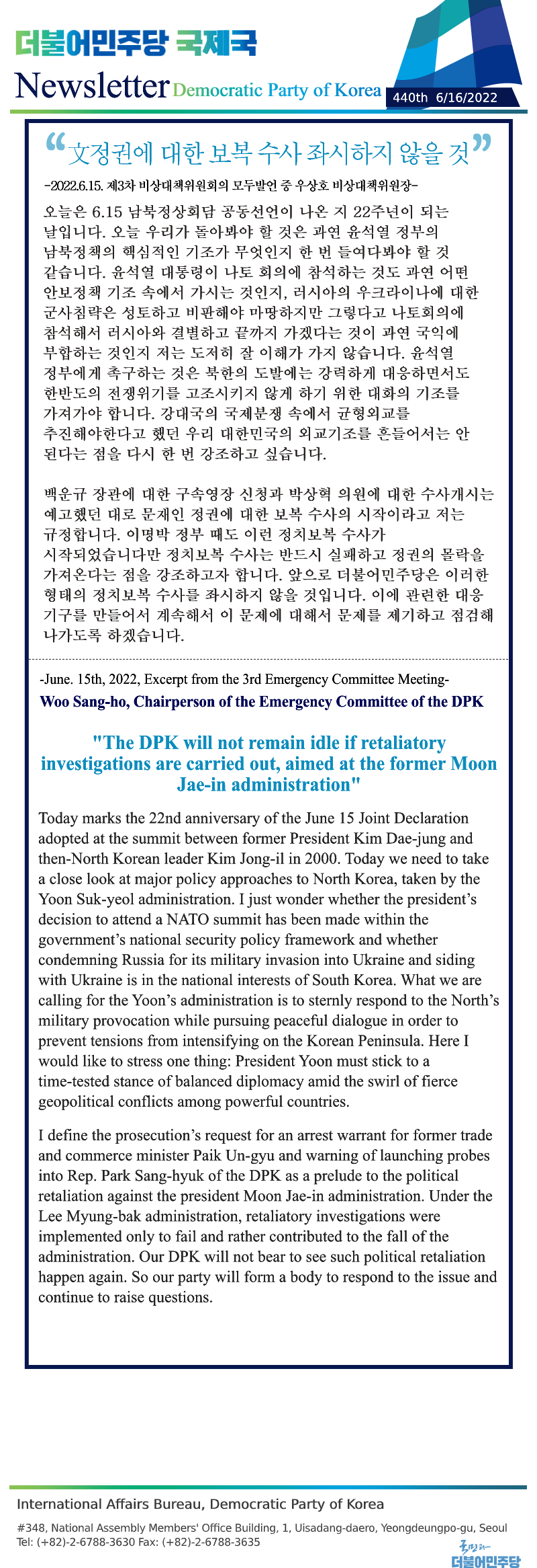 [440th Newsletter] Excerpt from the 3rd Emergency Committee Meeting